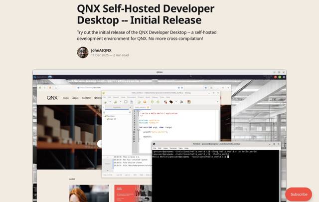 It’s not their legendary boot floppy, but a QEMU image with a desktop environment for QNX 8.0, with support for self-hosted compilation, using XFCE on Wayland (sadly, their Photon UI is long gone) and providing a number of development stacks and editors. The installation process seems overly contrived (and I am not doing it this holiday season, as I have far too much to play with already), so I would have loved to see an ARM bootable image for a Pi or similar.